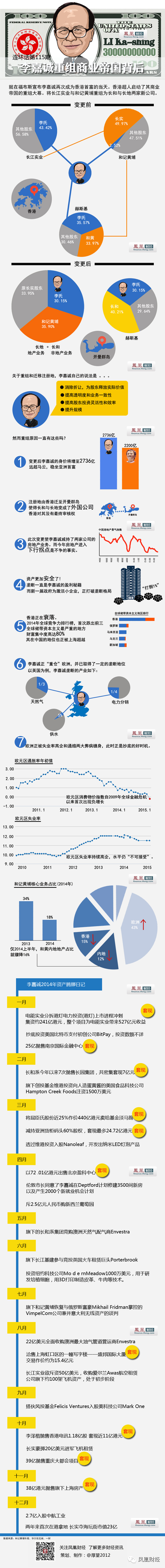 新華社10日?qǐng)?bào)道,1月9日,李嘉誠(chéng)旗下的長(zhǎng)江實(shí)業(yè)(長(zhǎng)實(shí))及和記黃埔(和黃)宣布業(yè)務(wù)合并、重組方案,兩集團(tuán)資產(chǎn)最終將分拆為兩間以開(kāi)曼群島為注冊(cè)地的新公司——長(zhǎng)江和記實(shí)業(yè)有限公司(長(zhǎng)和)與長(zhǎng)江實(shí)業(yè)地產(chǎn)有限公司(長(zhǎng)地),在香港上市。按照預(yù)計(jì),這個(gè)方案將在2015年年中完成。